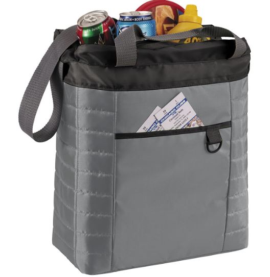 Adjustable shoulder strap and grab handles with drop down height of 14cm. Quilted body. Zippered insulated compartment. Slash front pocket and a plastic loop to hold your keys.