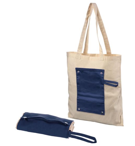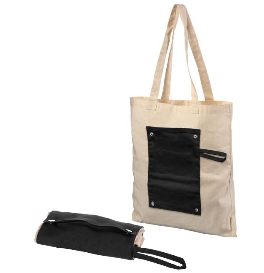 roll-up buttoned cotton tote bag with your logo on it. Cotton tote bag with open main compartment and practical buttoned roll-up 220 g/m² patch. This bag folds easily to fit in a small space. Drop down height of handles is 27 cm.