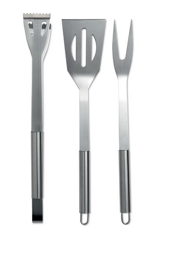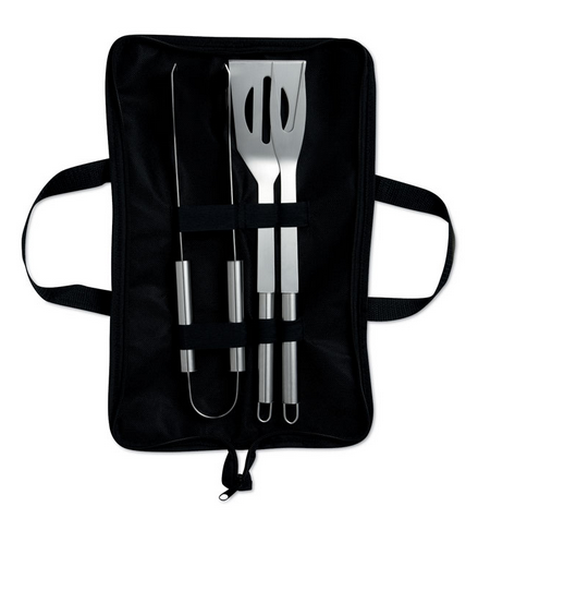 3 nerūsējošā tērauda grila rīku komplekts futrālī ar rāvējslēdzēju.