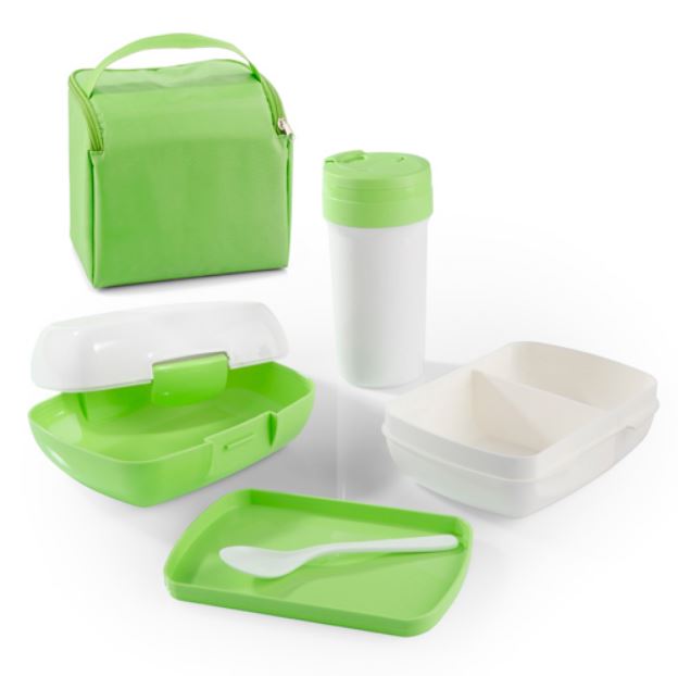 Paēdis cilvēks ir laimīgs cilvēks! Komplektā ietilpst ūdens pudele, pusdienu kārbiņa, karote un termo soma. Pusdienu kastītei ir divi nodalījumi. Termo soma ar PEVA izolāciju. Pusdienu kārba un ūdens pudele ir izgatavoti no augstas kvalitātes materiāla, kas nesatur BPA. Tilpums: 1200 ml + 540 ml.