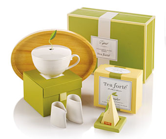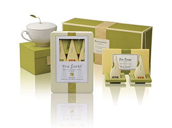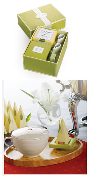 Dāvanas, kas nevienu neatstās vienaldzīgu! Ekskluzīva tēja Tea Forte pārsteidz ar savu garšu, piramīdas formas maisiņu un dizainieru izstrādātiem aksesuāriem. Unikālo piramīdu pildījumam tiek izmatots tikai bioloģiski audzētas tējas, zāļu un ziedu dabīgās sastāvdaļas.